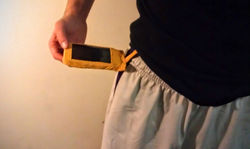 Separate the front and back interface and insert back clip underneath lower athletic wear (for optimium fit wear compression shorts)